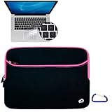 Bundle Set: Apple MacBook Pro / MacBook Air 13.3 Inch Black with Pink Trim Dual Pocket Zipper Laptop Carrying Case Sleeve (Checkpoint Friendly), Keyboard Silicone Skin Cover, and a Free Carabiner Key Chain